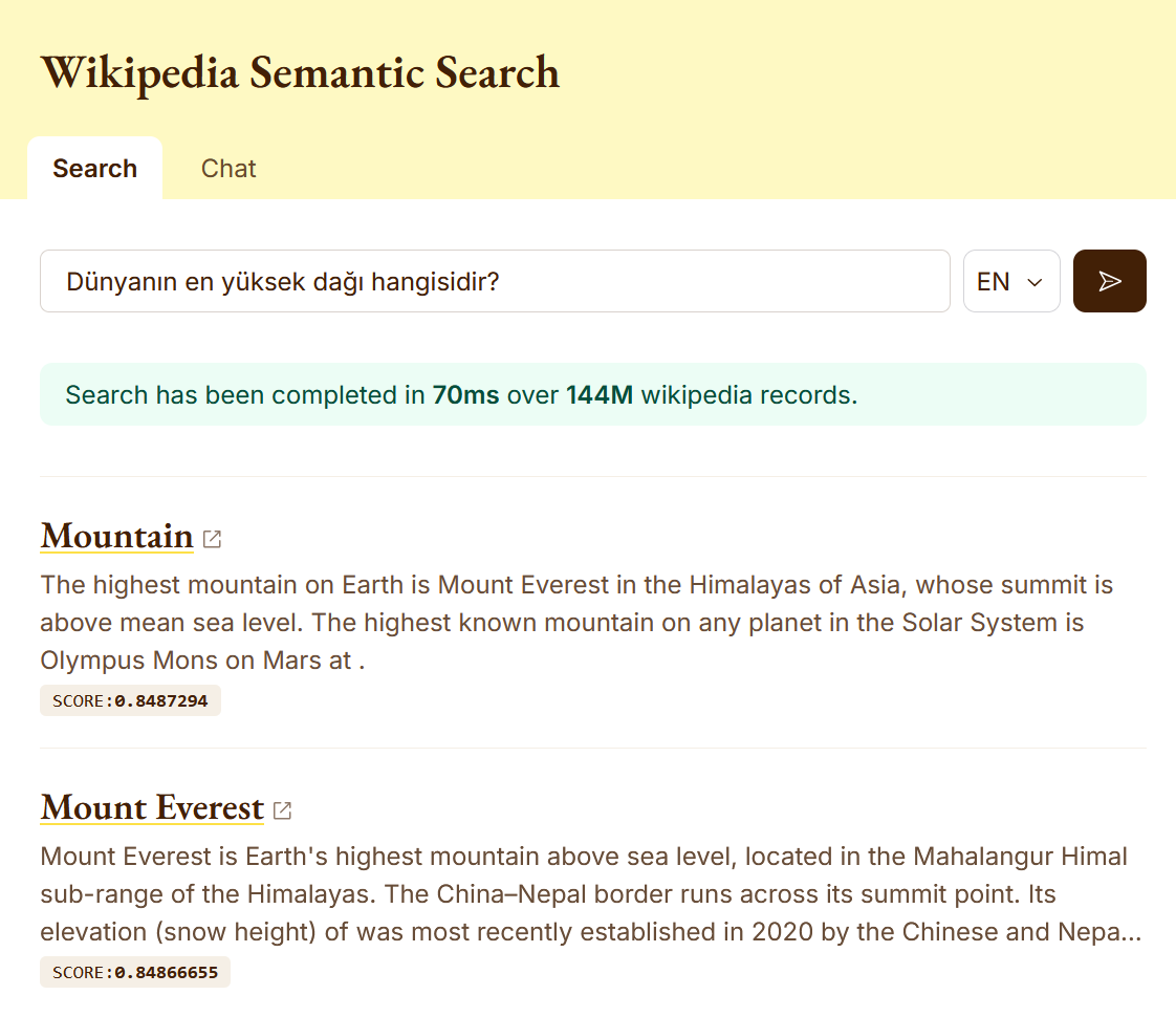It was great to index much of Wikipedia, from creating the embeddings to inserting them into Upstash Vector, and to see good query results even with large namespaces.