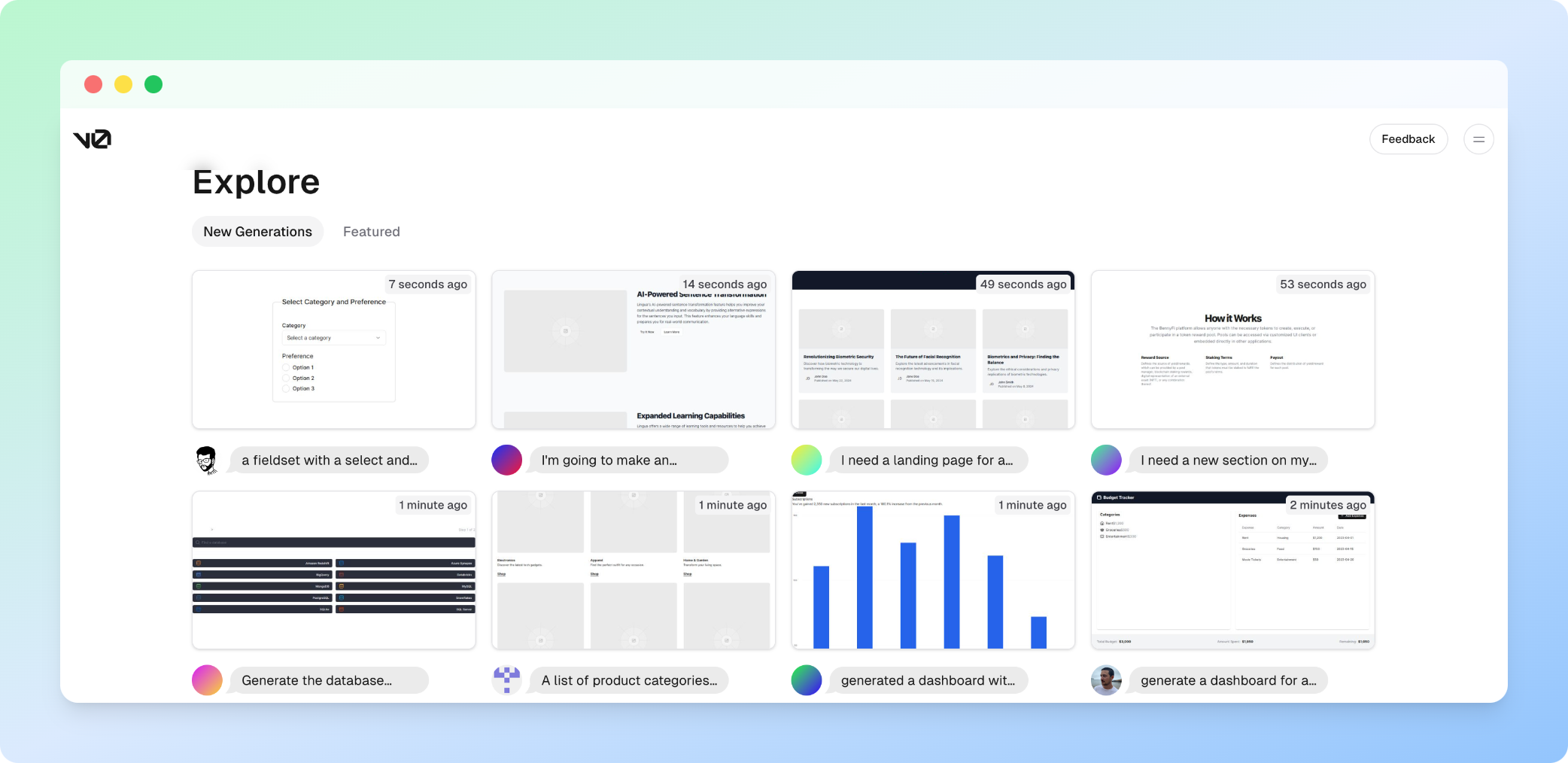 The impact of auto-pipelining on v0.dev's performance is evident from the improvement in the landing page. The landing page showcases examples from past queries and generations. First, it fetches the list of items to display and then makes individual fetches for each item, resulting in numerous Redis requests.